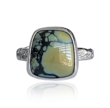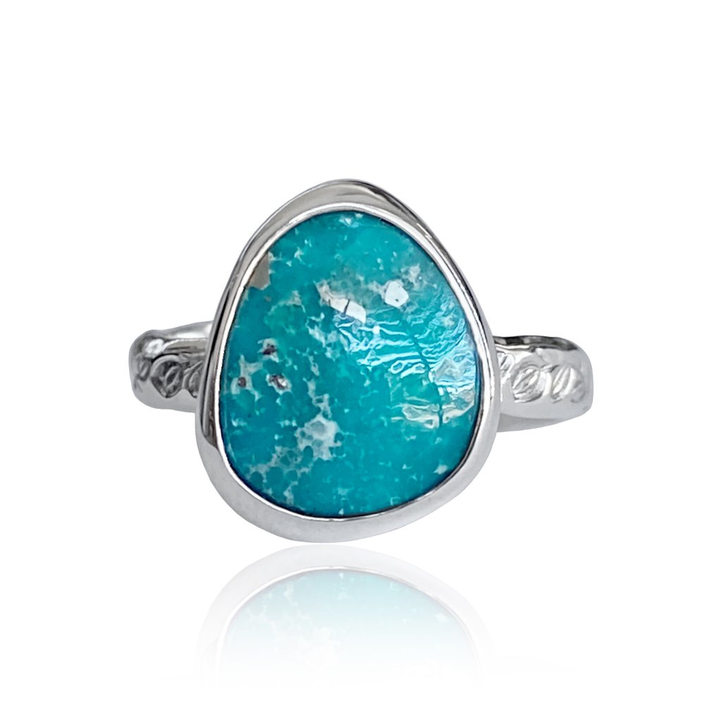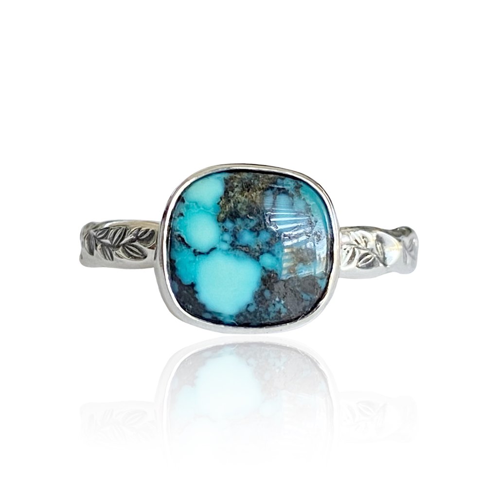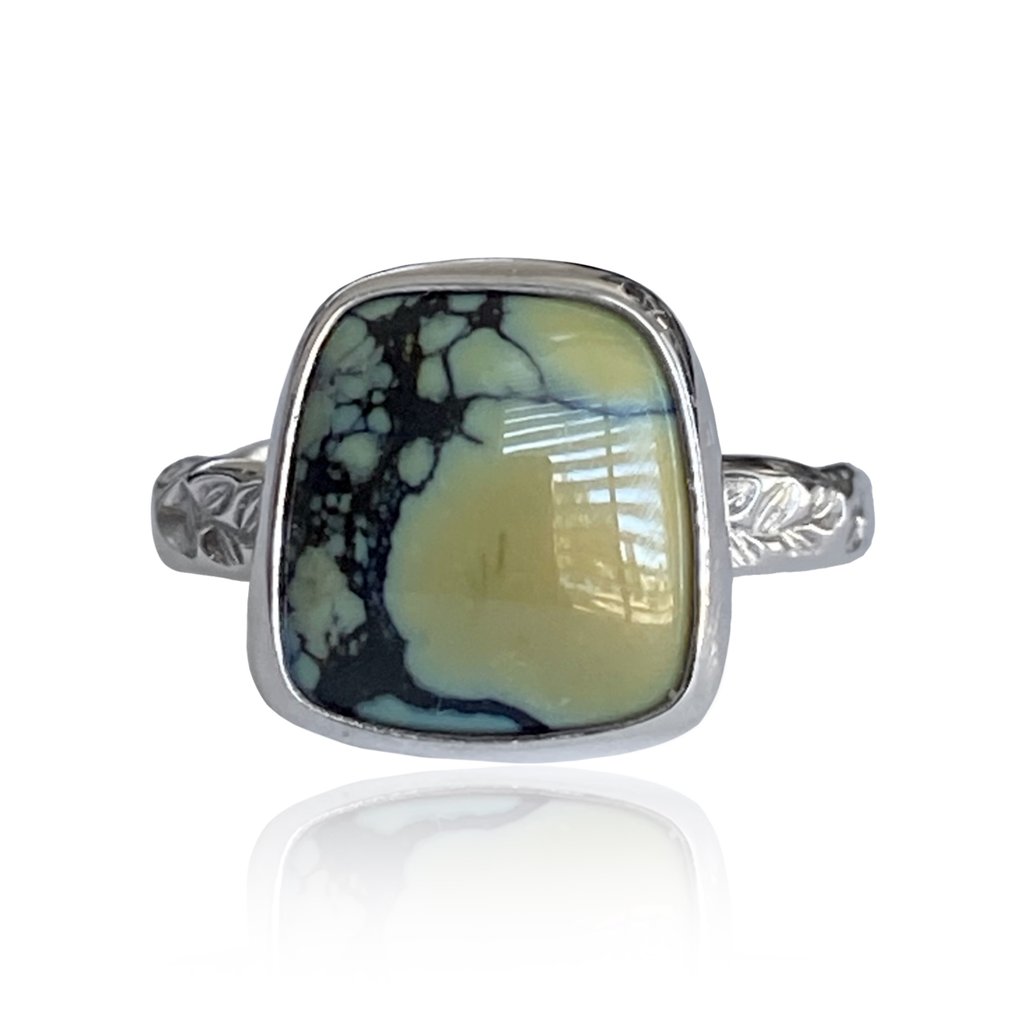 Next, we have the captivating Whitewater & Hubei Turquoise. Known for its classic blue-green tones, turquoise has been cherished for centuries. The intricate patterns and unique matrix that adorn each piece create a sense of individuality, making every ring an extraordinary work of art. The Whitewater Turquoise ring is not just a piece of jewelry; it is a statement that reflects personal style and appreciation for finely crafted stones.