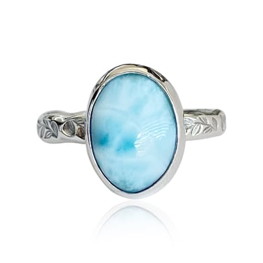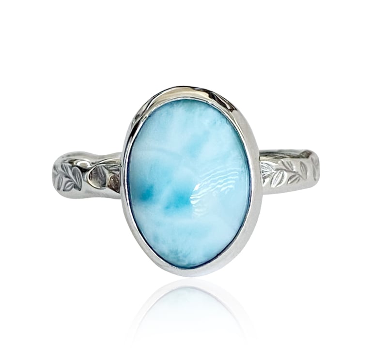 Following these unique gemstones, let me introduce the breathtaking Larimar, known for its tranquil blue shades reminiscent of the ocean. This stunning stone creates a sense of calm and serenity, and its rarity only enhances its allure. A Larimar ring is an embodiment of sophistication suitable for any occasion.